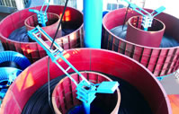 La partie de toronnage verticale des câbles de cette machine dispose de chargeur de bobine à table tournante. Elle peut libérer le fil sans torsion arrière, de façon à rendre les câbles ombilicaux.